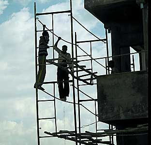 Wie in allen Städten werden auch in Lalibela neue, moderne Häuser errichtet.