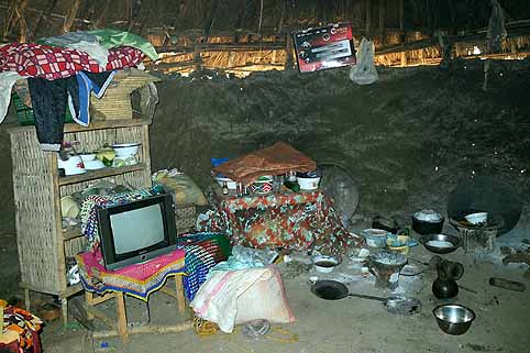 Oft sind Wohn- und Viehbereich unter einem Strohdach, um Viehdiebstähle zu verhindern.